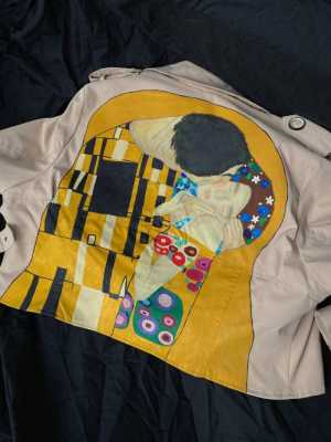 укороченный тренч с акриловой росписью не спине размер: М состояние новое цена:2700₽ г.