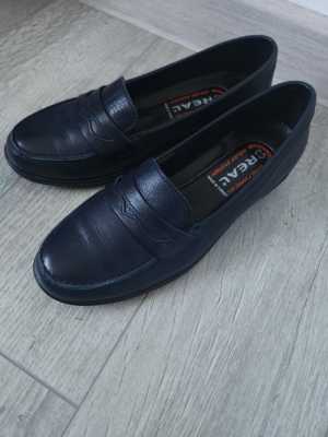 Супер удобные лоферы из натуральной кожи. Цвет темно синий. Есть поддержка пятки, идеальные для долгой ходьбы.