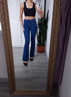 Джинсы клеш. Стрейч, садятся по фигуре. Размер 40-42.