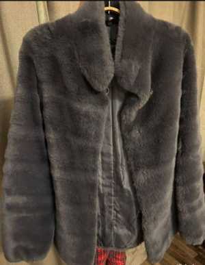 Новая шуба из искусственного меха приятного темно - серого цвета с воротничком Нижняя треть рукавов отстёгивается, замочек...